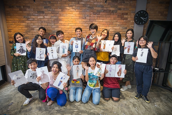 อภิเชษฐ์ เอติรัตนะ ที่มาสอนให้เด็กๆ ไฟ-ฟ้า ได้ลองสร้างสรรค์คอลเล็คชั่นเสื้อผ้าของตนเองจาก เศษผ้า แถมยังพกพาแรงบันดาลใจมาแบ่งปันกับทุกคนด้วย